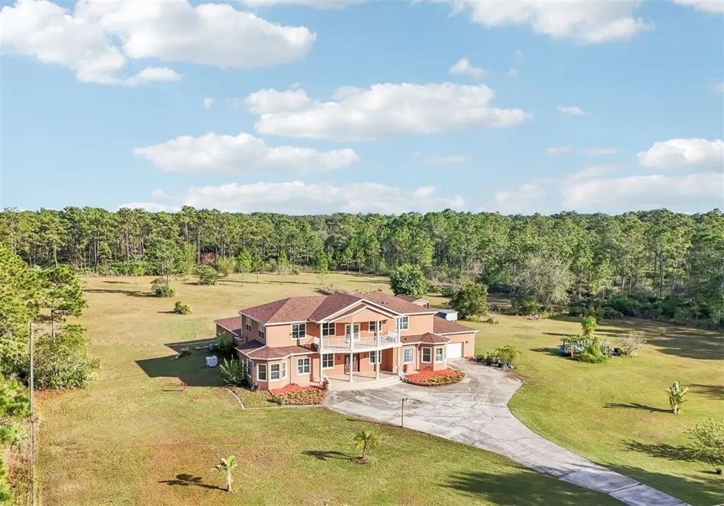 One or more photo(s) has been virtually staged. Dreams do come true! Welcome to your private slice of paradise in Wedgefield! This impressive custom-built estate offers over 5,000 square feet of living space with 6 bedrooms and 6 bathrooms, beautifully set on 4.77 acres and zoned A-2, so you can bring your horses, goats, chickens and more. Built in 2004 and well-maintained, this property blends peaceful country living with modern convenience and community amenities, including an 18-hole golf course, playgrounds, sports courts and nearby Hal Scott Preserve for hiking, biking and nature lovers. A 5-foot wrought iron fence spans the 360-foot front yard with a 20-foot wrought iron electric gate and pedestrian gates on either side, while the rest of the property is enclosed with 5-foot wire fencing- ideal for animals and added privacy. The enormous front and back yards are perfect for play, gardening, entertaining and enjoying the quiet setting, and the 288 sq. ft. Tuff Shed provides excellent additional storage. Step up to the Shark Coating front porch and through the double-door entry into a grand foyer that sets the tone for the rest of the home. Gorgeous inlaid porcelain tile flows throughout the first-floor living areas, and arched vaulted ceilings add volume and elegance. To one side of the foyer is a welcoming sitting room, and to the other, a formal dining area ready for large gatherings. The spacious, open kitchen anchors the main level with granite countertops, a granite breakfast bar, recessed lighting, abundant cabinetry and a huge walk-in pantry. The open concept layout connects all the spaces, giving you endless options for arranging living, dining and entertaining spaces to suit your lifestyle. On one side of the main floor you will find a guest bedroom with its own private bathroom featuring a Jacuzzi tub with shower - great for visiting guests or multi-generational living. The opposite side of the home hosts two individual office spaces, each with its own exterior entrance and one with a half bath, creating an ideal setup for remote work, home-based business, studio or hobby spaces. The main floor primary suite is a true retreat, complete with a tranquil sitting area and separate dual walk-in closets. The expansive primary bath offers a glass-enclosed shower, luxurious Jacuzzi garden tub and dual vanities, giving you a spa-like experience at home. French doors from the main living area open out to an approximately 1,100 sq. ft. screened lanai with porcelain tile flooring and a peaceful forest view. This impressive outdoor living area includes counter space with cabinets, a sink and a convenient half bath - perfect for hosting parties, enjoying quiet mornings with coffee, or relaxing after a long day without ever leaving your property. Up the grand curved staircase, a loft area opens to a balcony overlooking the front yard, giving you yet another beautiful space to relax or gather. Four additional bedrooms extend off the loft, two on each side, and each pair of bedrooms is served by a bathroom with a Jacuzzi tub and shower. One of the upstairs bedrooms features its own private sunroom, adding even more flexible living space for a reading nook, playroom, workout area or creative studio. This home is truly impressive - offering space, serenity and versatility inside and out! Come experience the peaceful setting and spectacular location for yourself. Call today to schedule your private showing an ASK US ABOUT THE ASSUMABLE VA LOAN or LENDER PROVIDED RATE BUY-DOWN CREDIT!